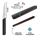 Très bon produit....attention aux doigts quand il est neuf ! Pour garder sa performance de coupe plus longtemps ainsi que sa couleur, il est mieux de ne pas le passer au lave-vaisselle. Avec ce couteau, plus aucun problème pour couper du pain campagnard à la croute dur ou des tranches fines de tomate...