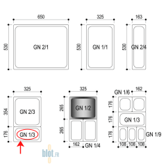 Pratique et polyvalent, le bac GN 1/3 s’intègre dans les saladettes, buffets froids, vitrines réfrigérées, tours de préparation et équipements respectant la norme GN.